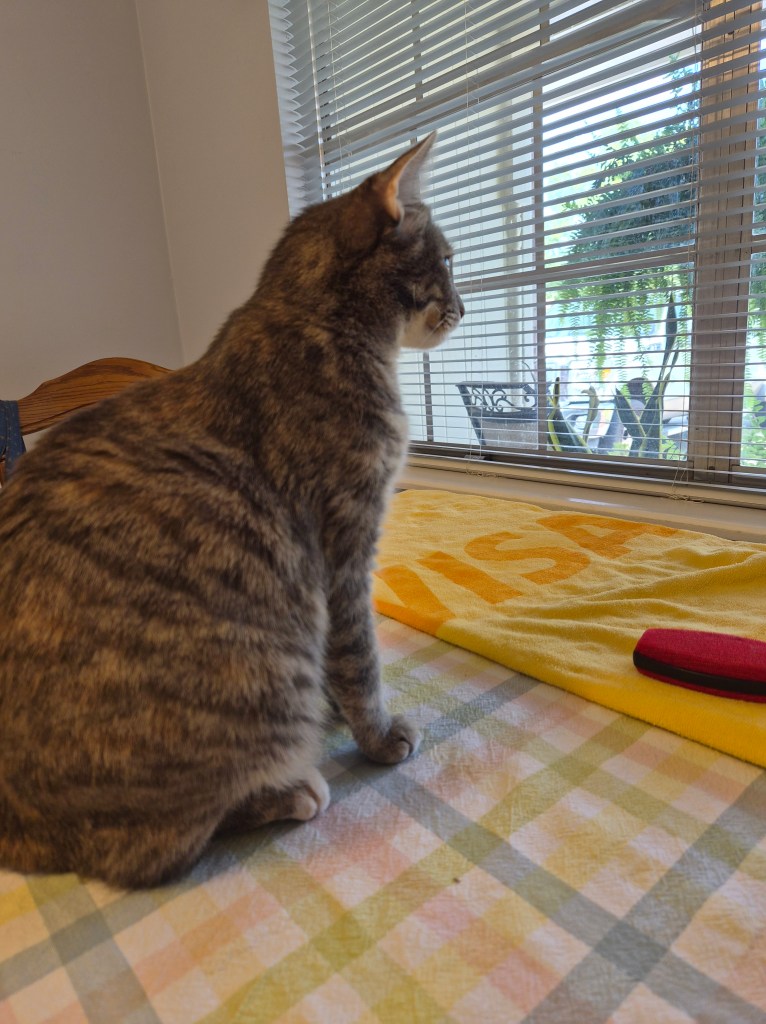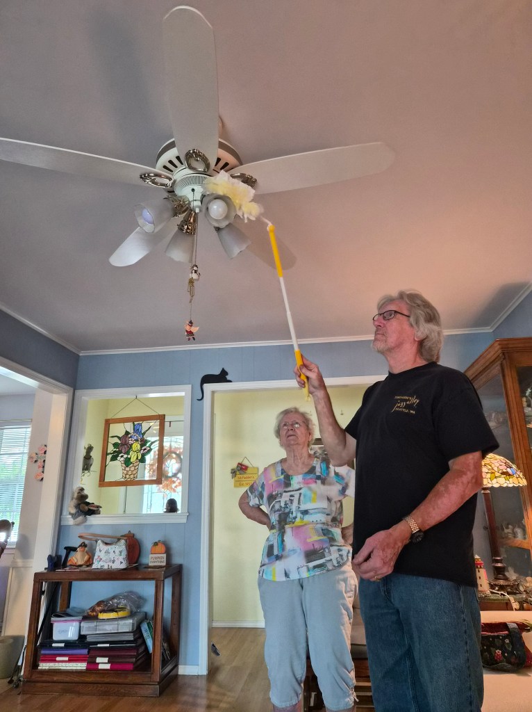 Linda asked Tom to clean her ceiling fans while we were at her house the other day. She has a cute little cat, named Sunny. Sunny gets into everything and she was certainly making sure Tom was cleaning the fans well. She’s a good watch cat and growls at people arriving or walking on the street.