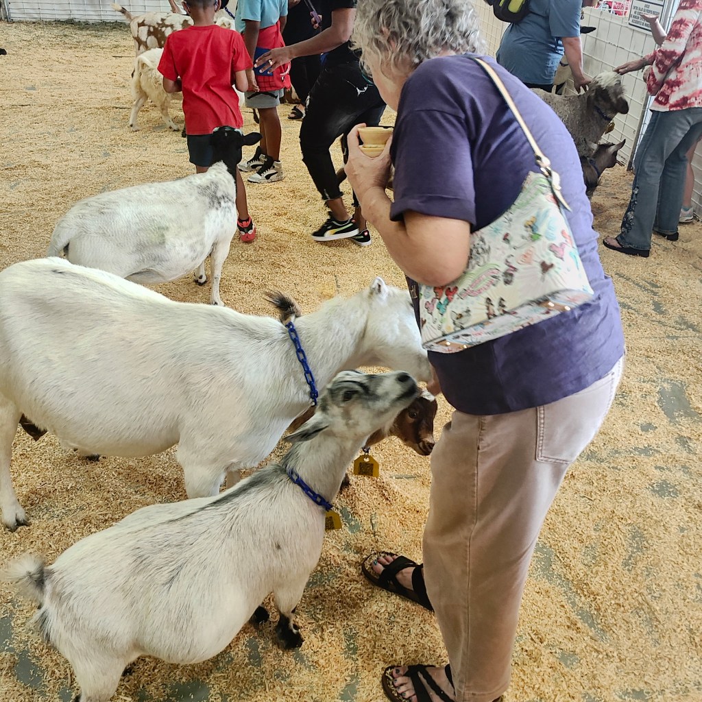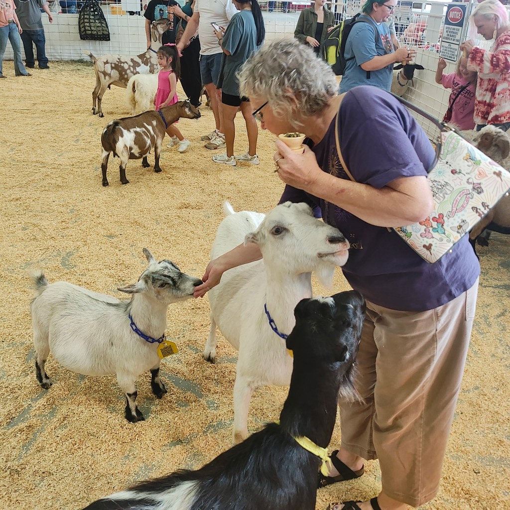 I wanted to spend some time with the baby animals. We’d seen that some new piglets were born and also some baby goats. It took a while to find them but we did. I had a great time petting and feeding the goats. Although when I left one of the older goats tried to eat my shirt. We didn’t get to pet the new piglets but they were cute. One pig had 16 piglets the day before!