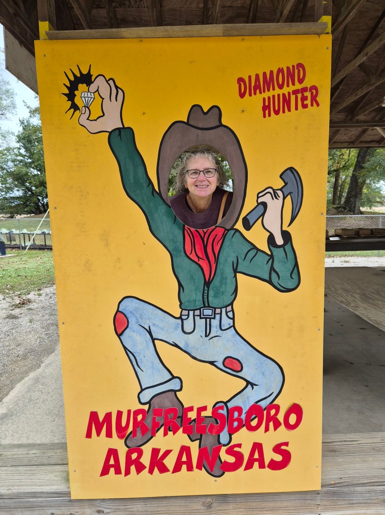 We’d like to go back sometime when it hasn’t been raining and the temperature is warmer. If you’re thinking of traveling there, be sure to make a reservation at the campground. The sites are large, tents are welcome in most and there are separate tent sites as well. The diamond field is open from 8a.m. to 4:00 p.m. and you can rent everything you need. David brought buckets and shovels and we rented the screens. There are many people who come often and have their own supplies.