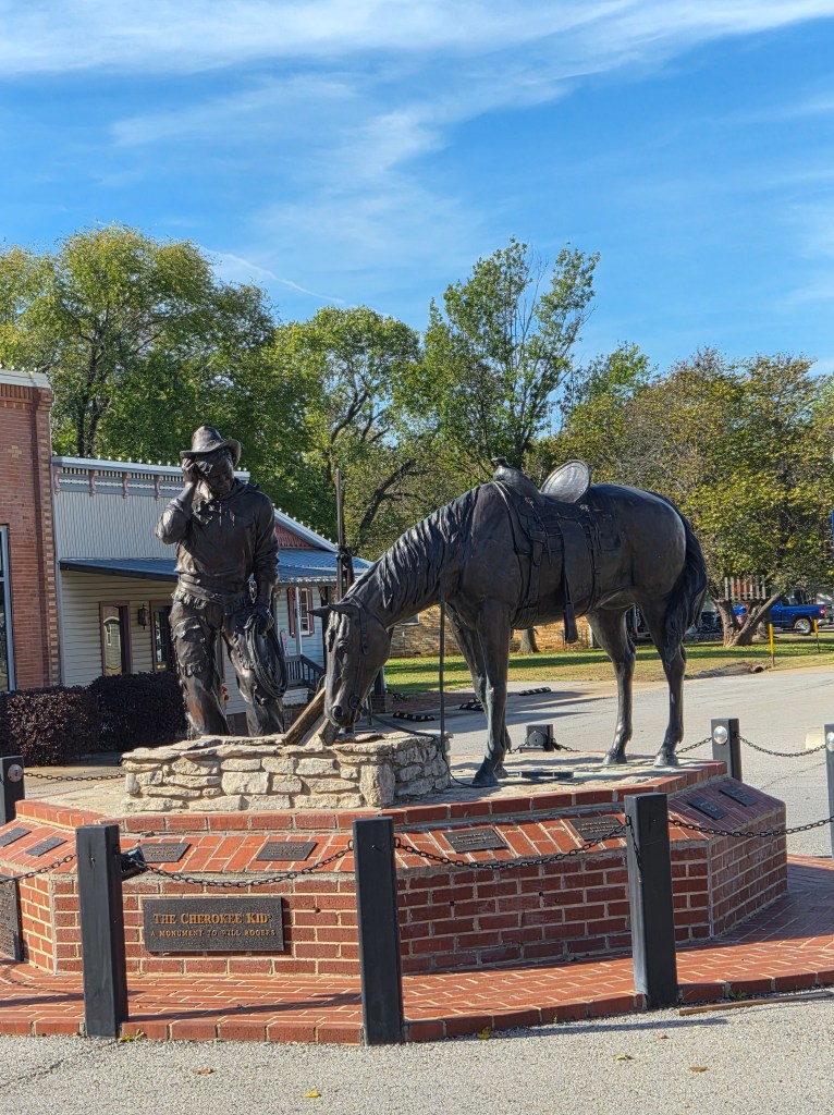 On our way back to Tulsa we stopped in Oologah to mail a letter. Tom noticed a replica of a house so we stopped to take a look. It was a replica of Will Roger’s birthplace. It just so happened to have been what would have been his 146th birthday. We didn’t go to the museum because I read it was temporarily closed for renovations but I think they just hadn’t updated the website. It was still an interesting find and I’m glad we stopped to take a look. The last picture was in the town square near the post office.