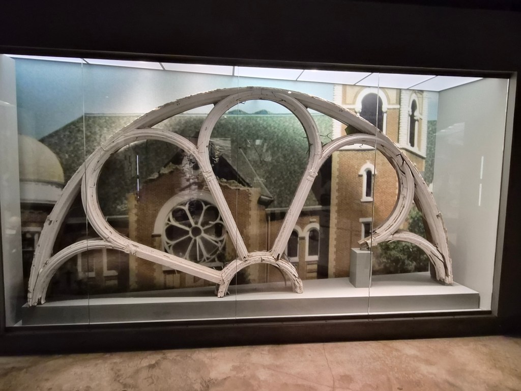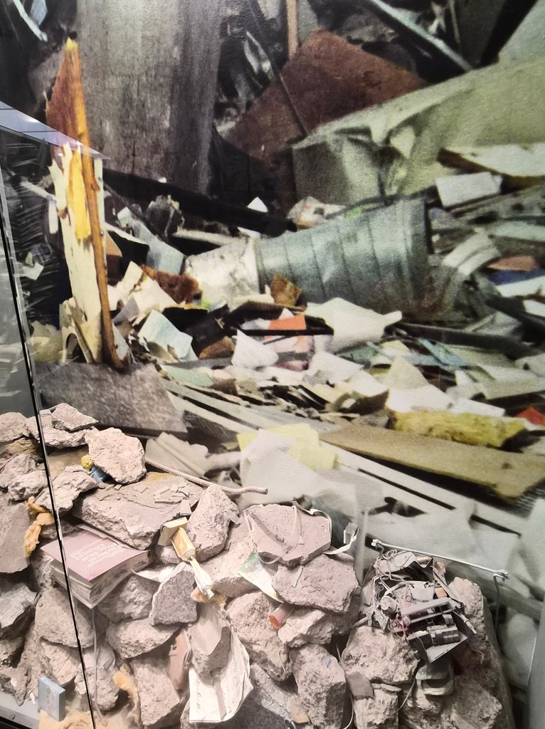 On the outside of the memorial is the survivor tree and chairs that are placed for each person that was murdered. It is a moving memorial. There is also a wall that remains from the original building.