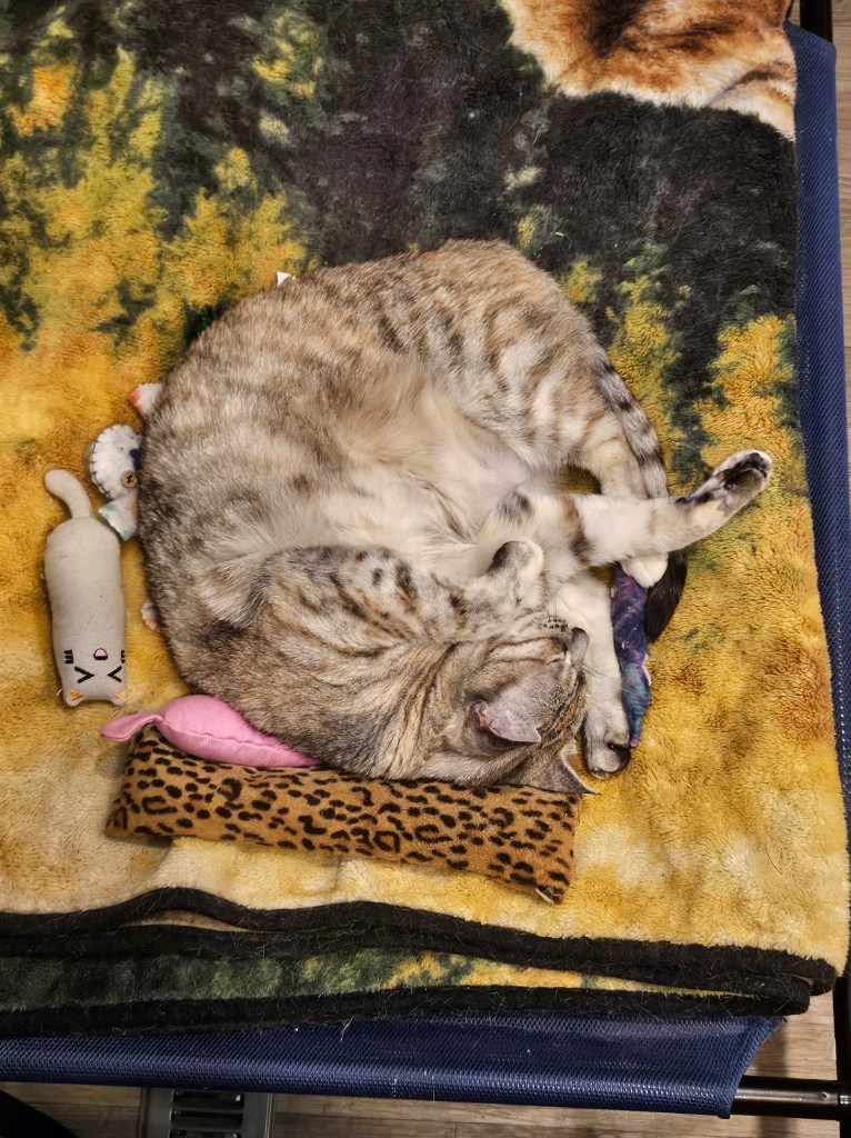 The kitty’s are happy we have been home more. I think they have enjoyed not traveling for six days. Although being nose butted by Penny at 5:00 a.m. yesterday morning was not my finest hour, or hers.