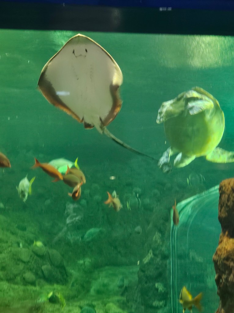The Penguins were in darkness because of the time of year but we did see a few outside. There were two swimming and I told Tom they swim like ducks. We enjoyed the turtles and Manta Rays too.