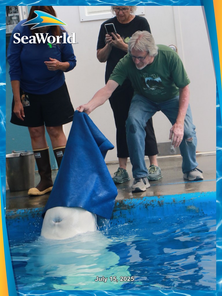 But nothing compared to the Beluga Whale Encounter. I loved them so much. Their heads are squishy, they are so intelligent and we were awed by their vocal noises. I highly recommend this encounter if you are ever at Sea World. We fed them fish and squid and enjoyed their playfulness.