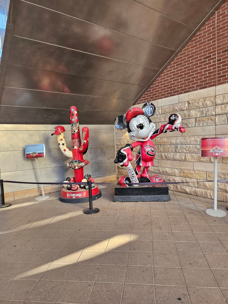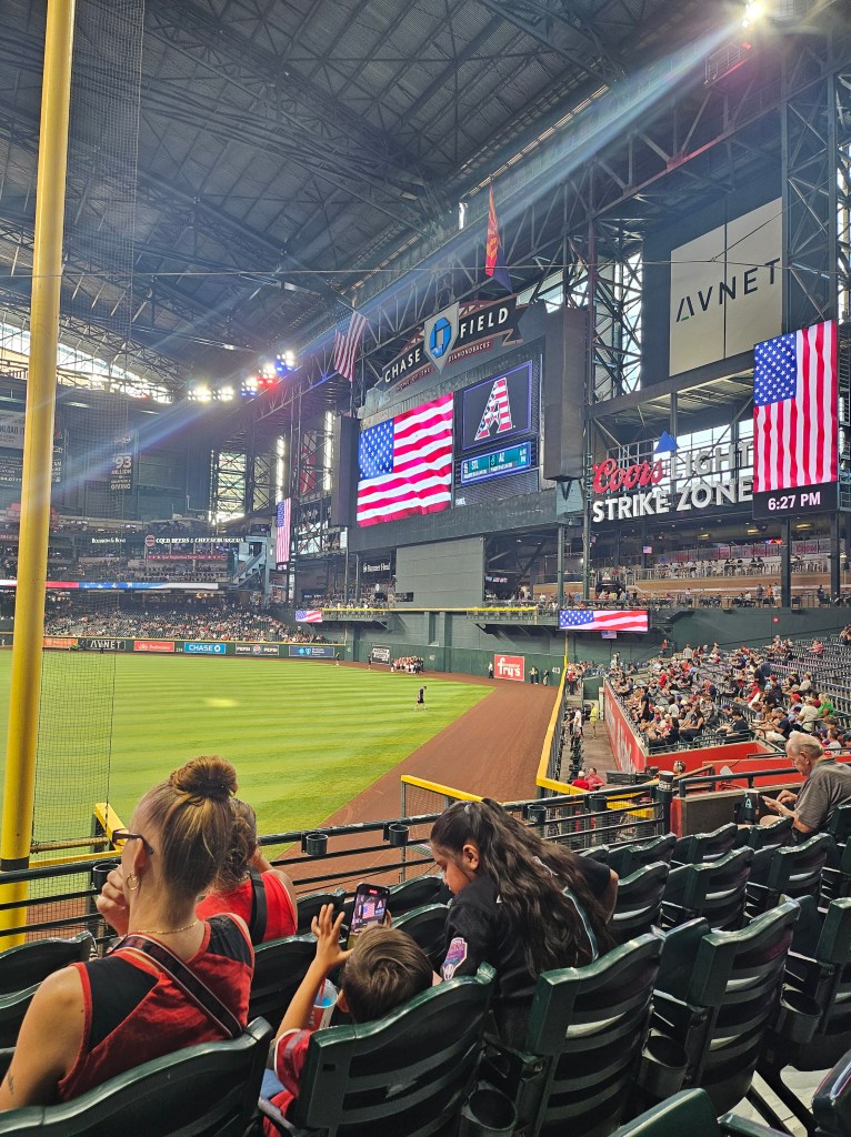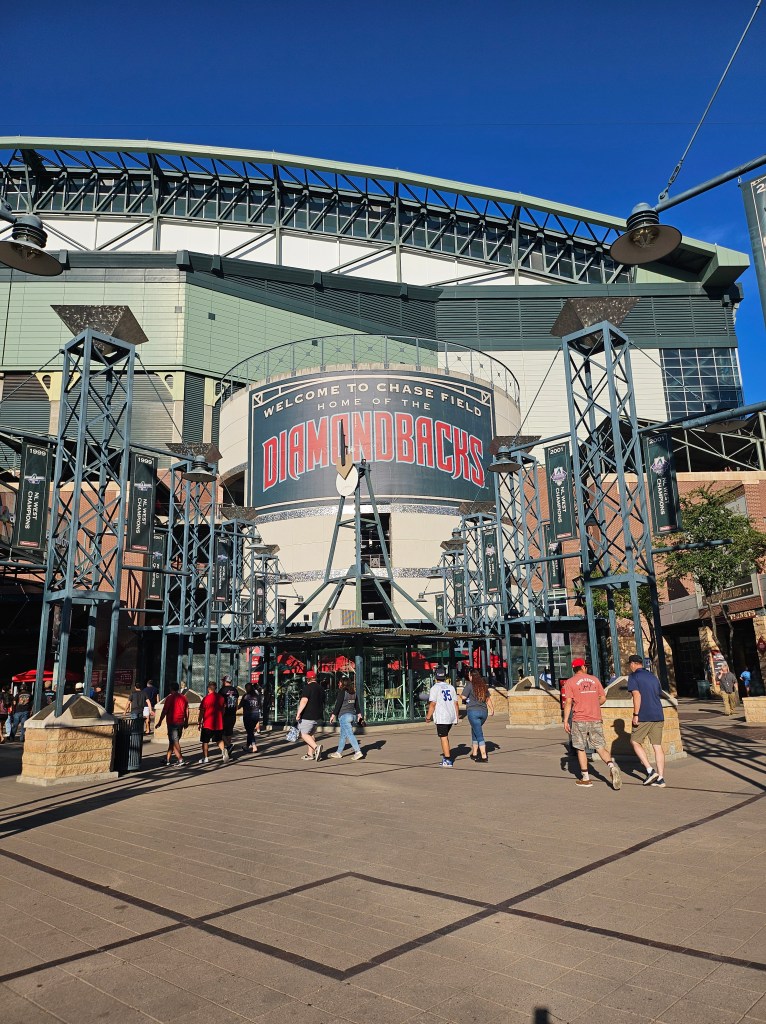 Chase Field, where the Diamondbacks play ball is air conditioned. They keep it at 78 degrees. I had air blowing on me during the game. It was amazing after being in the hot 5th wheel all day. It is my favorite stadium so far, but sadly my STL Cardinals got hammered.