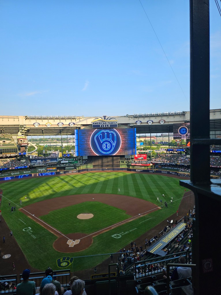 Tonight was our Milwaukee Brewers game. Can I just say I was hoping they would both lose? But if I had to choose one to win between the two I would choose the Brewers. I am a diehard Cardinals fan and rooting for the Cubs would be unheard of. Even when we go to see the Cubs on Friday I will not be rooting for them. Sadly, we will miss the White Sox game because of a snafu with our travels.