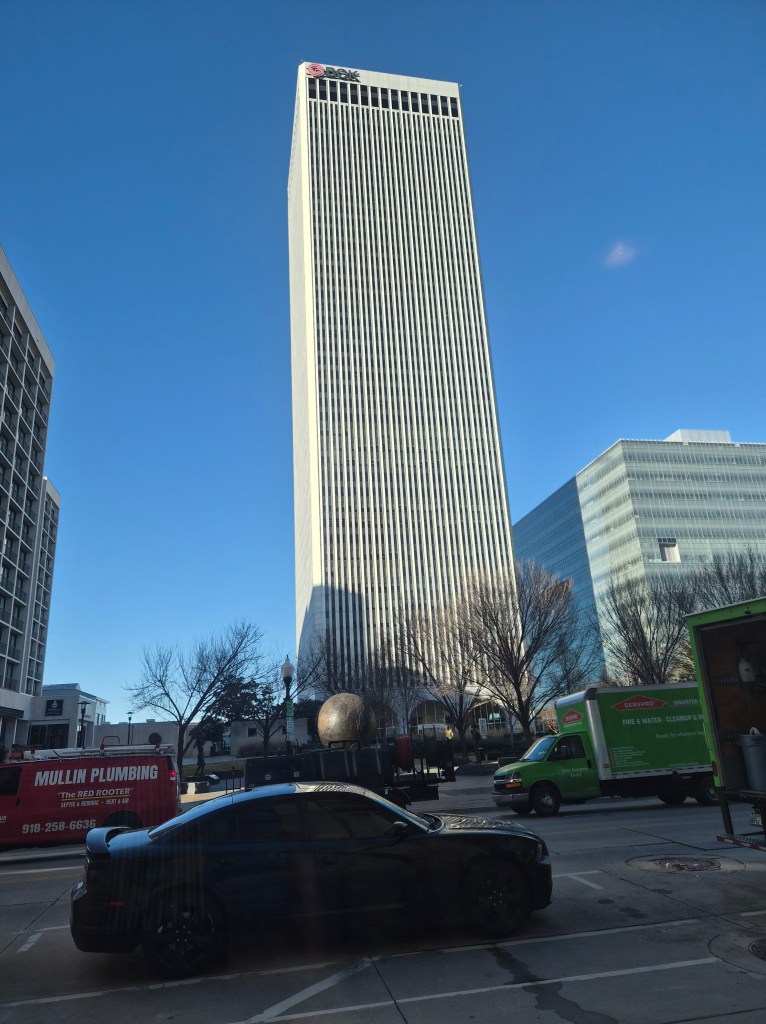 There was stained glass in one of the buildings of the Tulsa skyline. It was amazing to look at.
