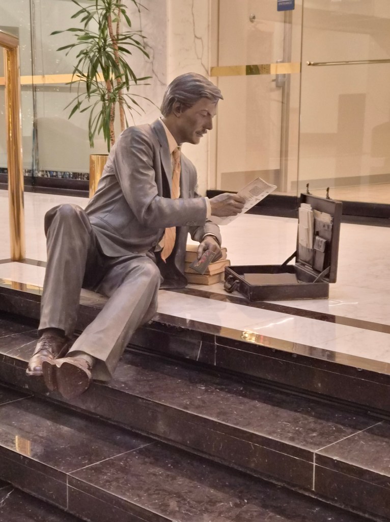 We did see an art installment in one of the buildings. There is another one in the Denver airport. I don’t know if that one has a name but our guide named this one Chase because it sits in front of the Chase bank office. Someone asked if the other one was named Morgan.