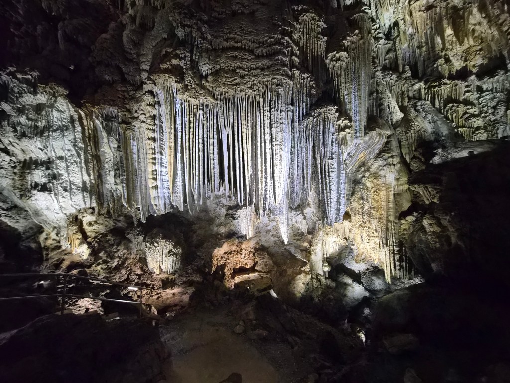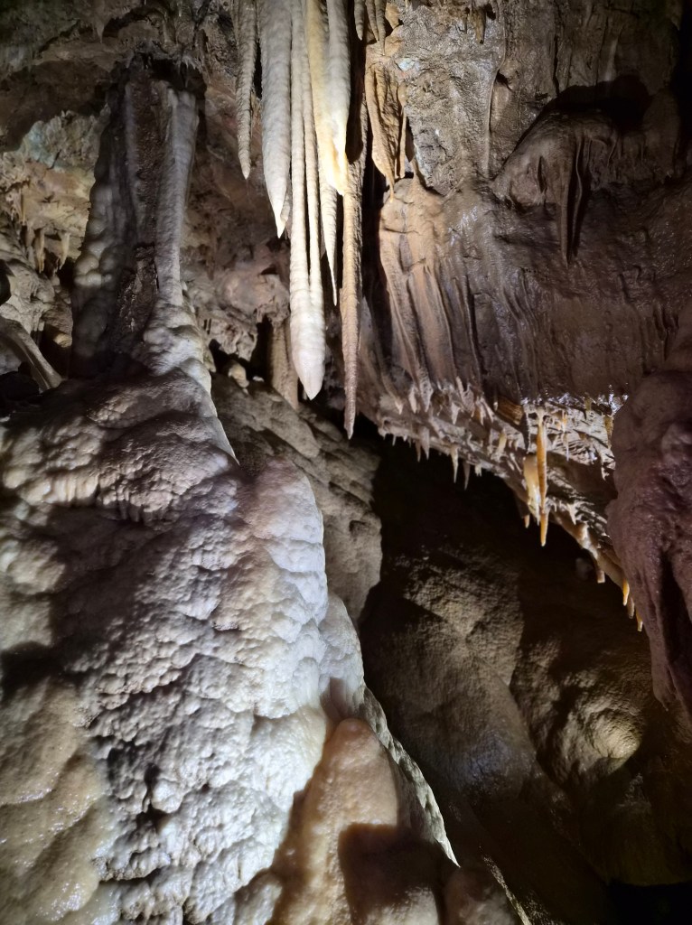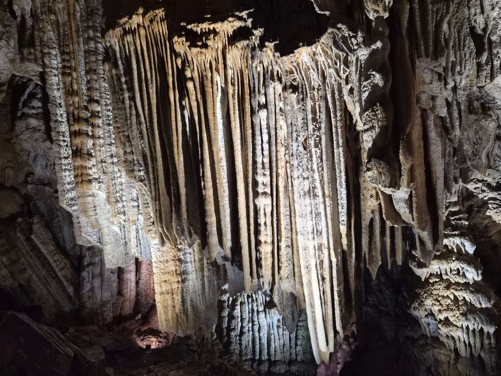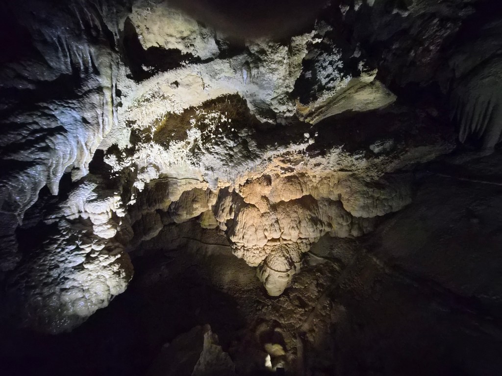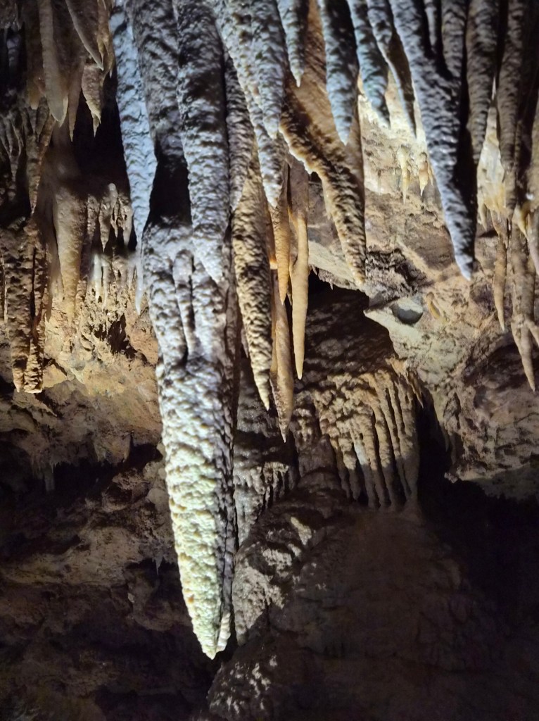 We entered at the lower entrance and began our walk up and through the cave. It is a living cave, meaning there is water and it is still forming. Living caves are much more interesting than dead ones. But I like them both. There are a lot of stairs, so if that is difficult for you, I’d rethink going. My legs felt like jello by the time we were done. 80 steps to one room and another 57 to another room. Upon exiting the cave you walk down over 200 steps on the outside back to the visitor center. I know this because a young girl was counting as went down.